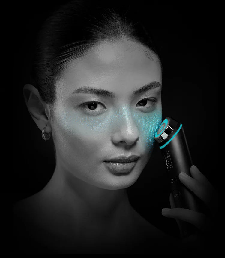 A multifunctional facial device (electroporation, microcurrent, LED, etc.) designed to improve the absorption of your skincare products, smooth the skin, reduce the appearance of pores, and give you a more radiant complexion.